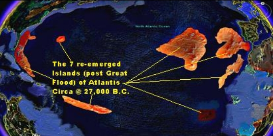 The 3rd civilization of Atlantis was completely lost due to the second human triggered global cataclysm called the Great Flood. (There were a total of 4 civilizations of Atlantis, with only the first civilization able to survive the night of the Yuga cycles). During the Great Flood, most of what had been the continent of Atlantis was drawn down into the mantle through two large sinkholes, similar to the above descriptions. Unlike the other subductions of the Great Flood, Atlantis was the epicenter and trigger of all the events causing continental losses through massive sinkholes. The first Atlantean sinkhole was where the Gulf on Mexico is now, and the second was in the southern portion of what is now the Sargasso sea. Simalar to what is described above, these sinkholes were eventually sealed over, in this case by underwater mountain ranges and/or other features. Immediately after the Great Flood, there was no land of Atlantis that had re~emerged from the draining Earth. Later, at the same time as the events described called the Tower of Babel (and coinciding with the first retreat of the glaciers), 7 Atlantean islands re~emerged from the soup like post flood oceans and seas. These 7 islands still had most of their top soil of Atlantean red. The largest of the 7 islands was located in what is now the Eastern Atlantic ocean in the Azores, Madeira, and the Canary Islands areas. And the largest western islands of Atlantis were in the area of what is now the Bahama's, including Bimini. Before the second rising of the Himalaya's and the uplift of the mountains of South America, Atlantis of the 7 islands had the tallest mountain on Earth, then called Mount Atlas, a volcano. Mount Pico of the Azores is what is left of Mount Atlas, after the cataclysms that came along in the later Mahabharata~Atlantean war. Like the two previous and larger versions of Atlantis before it, the 7 Islands of Atlantis had many beautiful features, healing waters and hot springs, fertile land, and favorable weather. As it turned out however, the 7 islands of Atlantis were not stablized upon the mantle in which they sat. This would not have been a factor to future generations of Atlanteans of the 7 islands, except that they ended up ignoring the instability of their own 'basement'.